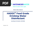 SDS EU (Reach Annex II) HADEX Safety Data Sheet according to Regulation (EU) 20158EN (English) POISON CENTER doctor P3- Specific treatment (see supplemental first aid instruction on this label) P5- Dispose of contentscontainer to hazardous or special waste collection point, in accordance with local, regional, national andor international. It is a sodium hypochlorite base safe, effective and continuous disinfectant for drinking water. It is easily stored and lasts a long time if stored in normal conditions it lasts at least months, if stored below 6?C, at least years. Resultaten van PBT- en zPzB-beoordeling Geen aanvullende informatie beschikbaar 1. SDS EU (Reach Annex II) HADEX Veiligheidsinformatieblad volgens Verordening (EU) 20158NL (Nederlands) 1. Mobiliteit in de bodem HADEX Ecologie - bodem Ontbindt zich. HADEX Food Grade Drinking Water Disinfectant HADEX Food Grade Drinking Water Disinfectant Print date: Revision: 1 Compile date: September 20 of Material Safety Data Sheet.